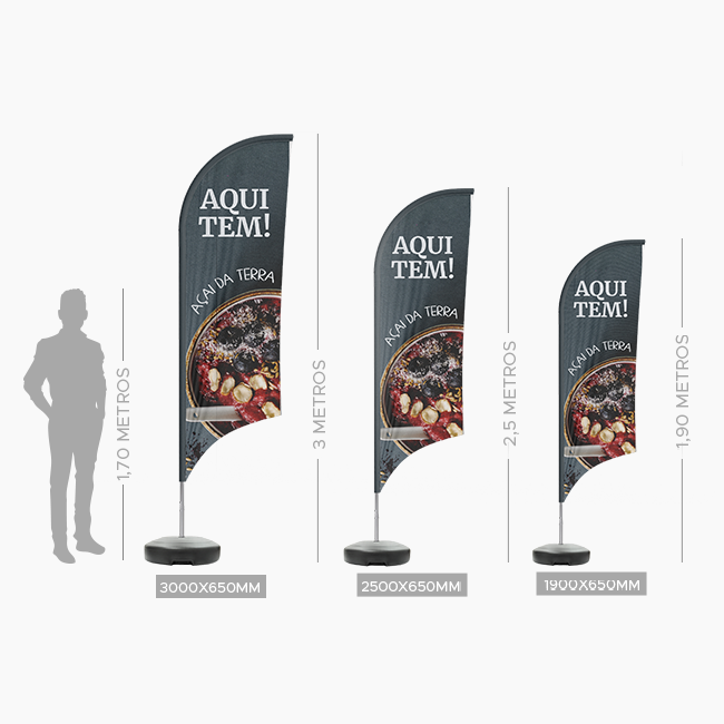 O Wind Banner é muito usado nas calçadas de lojas para chamar a atenção do público que passa pelo local.
